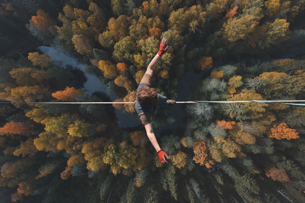 Person die im Vordergrund eines Sonnenunterganges im Schneidersitz sitzt